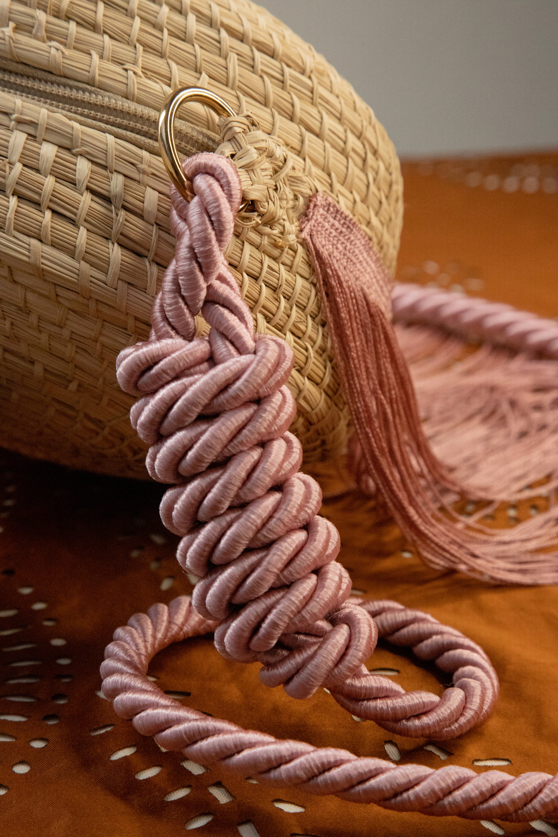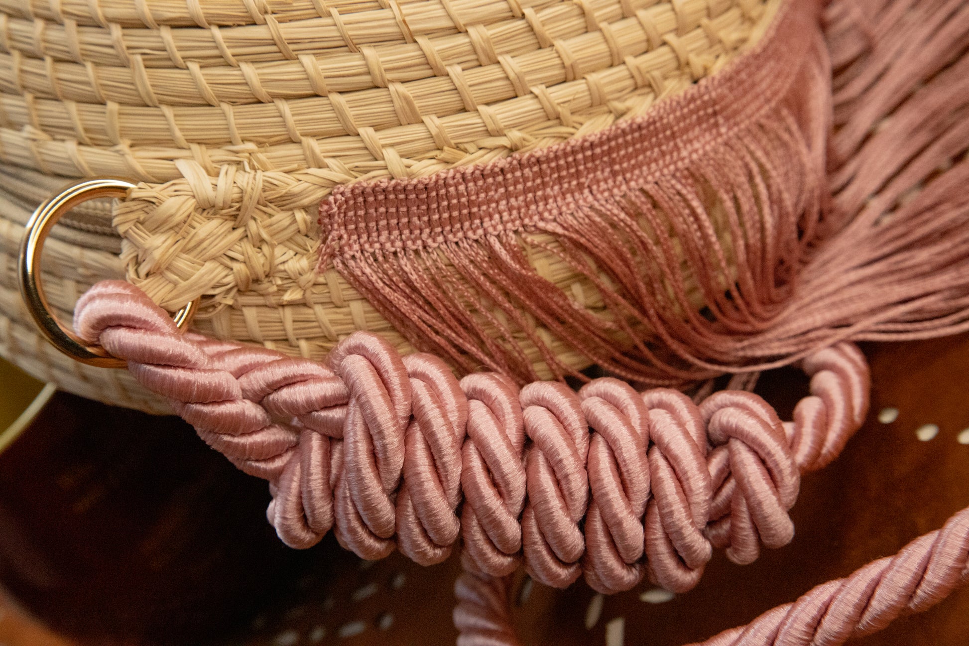 Our circular Crossbody bag is delicately handwoven from sustainable iraca palm and can stand alone.