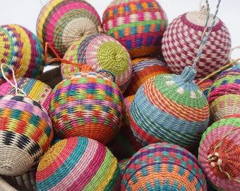 Our Christmas tree holiday ornament is delicately handwoven from sustainable iraca palm. Every ornament is one of a kind.
