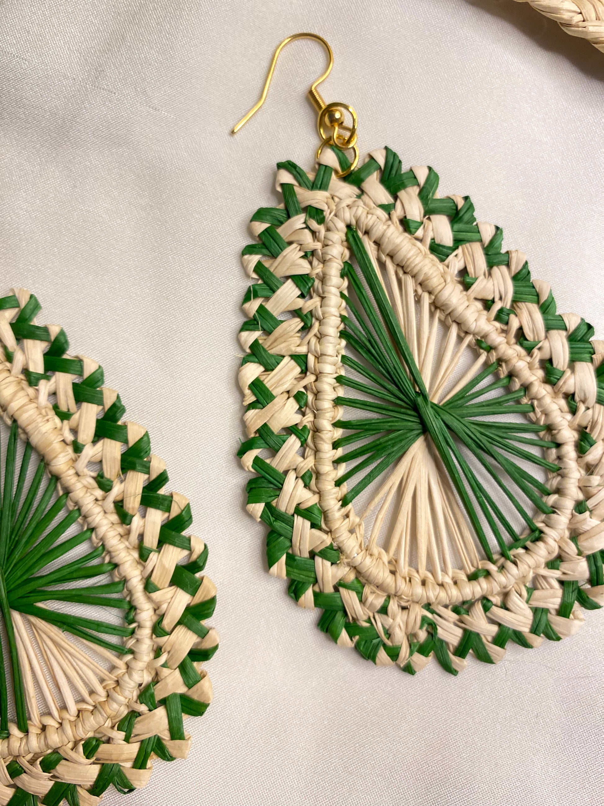 Our Teardrop earrings are handwoven by professional women weavers in Usiacuri, Colombia from sustainable iraca palm. All our accessories are made by independent women entrepreneurs who weave full time and are paid a fair wage.